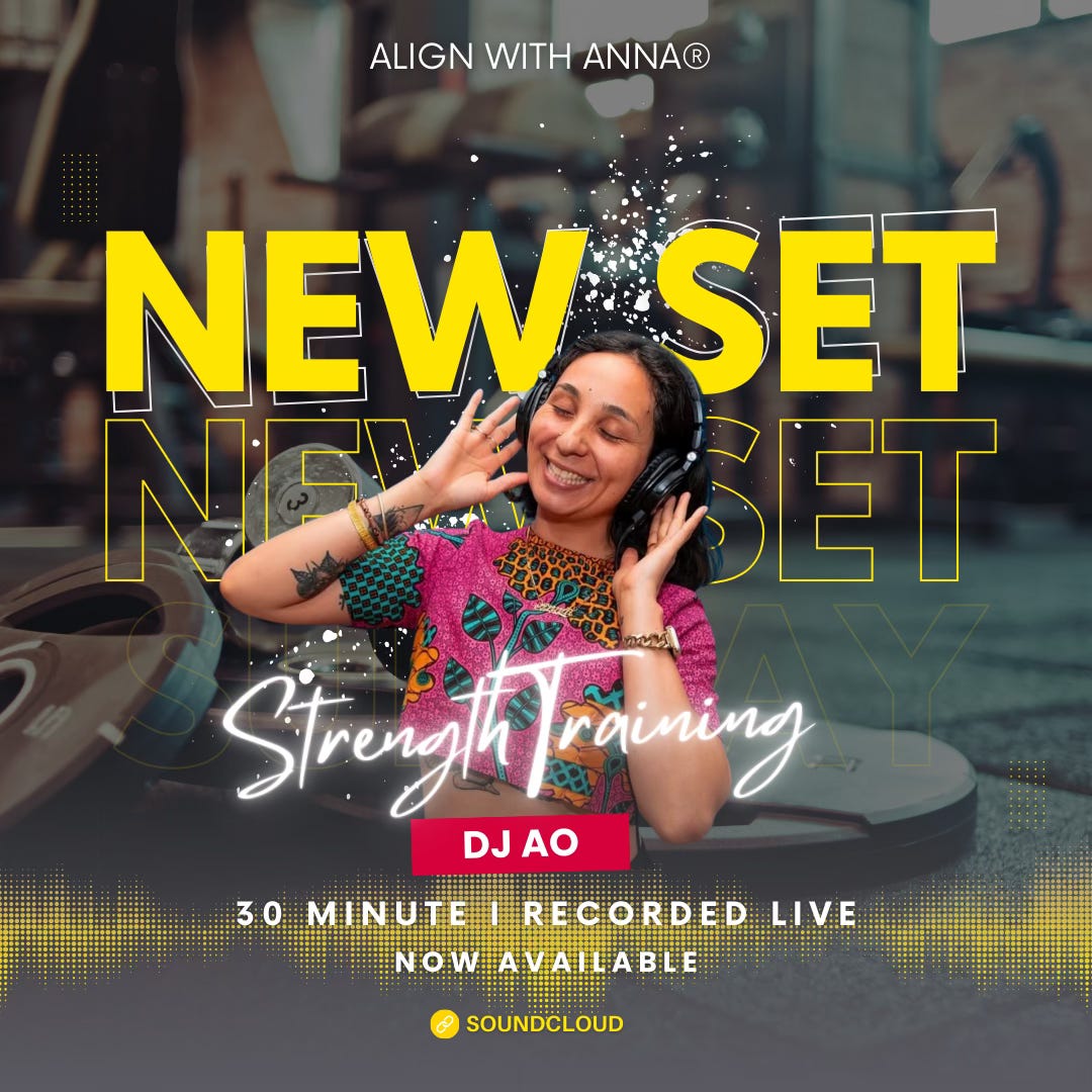 A 30-minute strength training DJ set blending modern hip-hop, early 2000s heat, and a little playful chaos to keep your spirit high while you lock in.